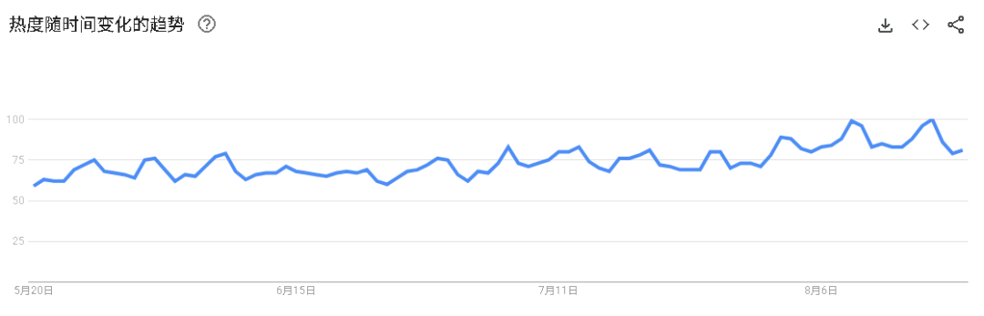 根据 market.us 的报告,全球匹克球运动市场价值预计在 2033 年增长至 79 亿美元,其中,北美和欧洲仍是核心消费地,并正加速向其他地区扩散这股热潮。从上方 Google Trend 的搜索趋势不难看出,过去 90 天内,全球地区关于“pickleball”的搜索热度一直保持在 50—100 之间,并在 8 月 9 日和 17 日达到峰值 100,从侧面反映人们对匹克球持续升温的关注度与潜在得消费需求。