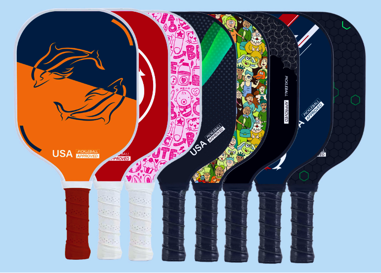 匹克球拍的球拍面同样也是跨境卖家可以深挖的差异化机会。匹克球拍的球拍面通常由玻璃纤维或碳纤维制成,表面光滑,非常适合进行个性化设计和风格定制,跨境卖家可以针对不同消费群体推出多种风格的球拍面,比如简约纯色、渐变彩色、潮流插画、动漫或卡通元素,甚至节日主题或品牌联名款。这类定制化不仅满足了年轻人和家庭用户对个性化产品的需求,还能显著提升产品的视觉吸引力和溢价空间。