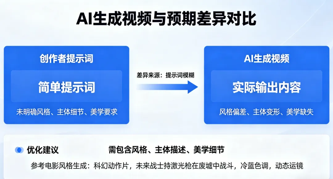 如果说工具的局限性是“先天不足”,那使用者的认知和使用能力,就是“后天拖后腿”——这也是多数人做不好AI视频的主要原因,却也是最容易快速改善的部分。