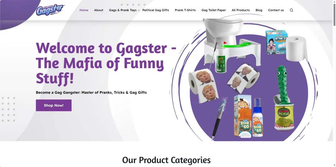 值得注意的是,这款产品来自Gagster,品牌创立于2015年,从名字上也可以轻易看出来这家店的定位——一家专门制作恶作剧产品的品牌。在Gagster的官网上,我们可以很轻易地看出其中的商品主要可以分为三大类——跳舞玩具、臭屁喷雾,以及各种各样的纸巾,种类丰富的产品也会吸引消费者去考虑购买更多款。