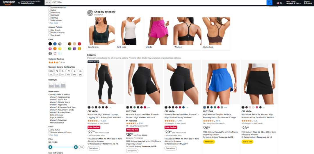早期,品牌通过亚马逊等电商平台快速打开了市场。亚马逊的FBA物流体系解决了跨境配送的难题,而平台本身的流量扶持也进一步提升了 CRZ YOGA 的曝光。
