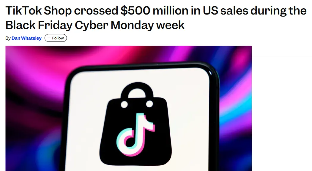 另一方面,以 TikTok Shop 为代表的社媒电商正在全球范围内重塑消费链路。例如,在今年“黑五网一”爆发期内,TikTok 美区仅用四天总交易额便突破了 5 亿美元,日本站直播带货销售额更是飙升了 300%。
