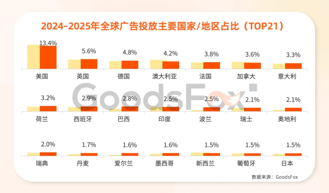 与此同时,一批增长型市场正在浮现。波兰、奥地利、巴西、爱尔兰等国家的投放增速明显高于全球平均水平。