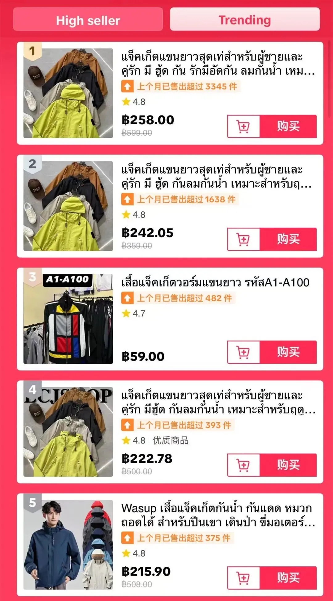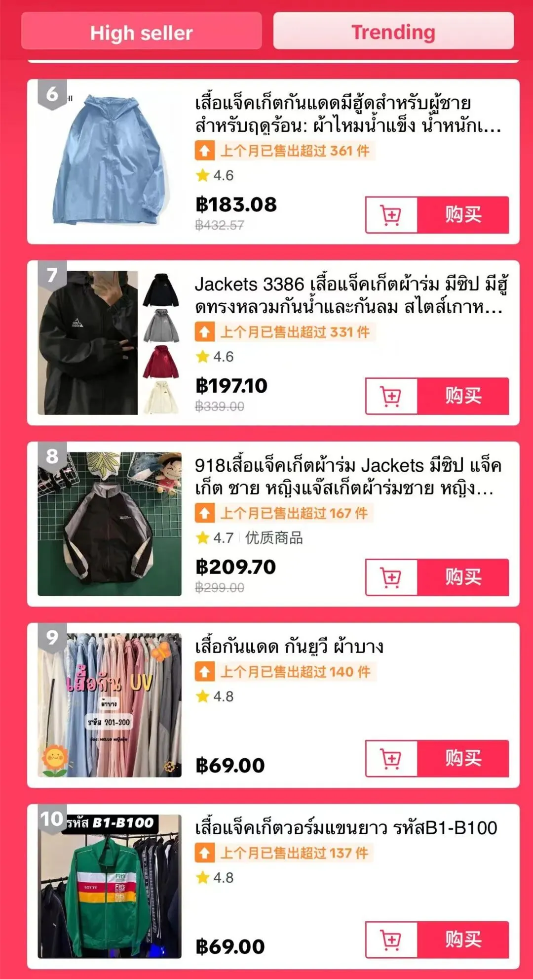 衬衫类目热度榜来看商家已然开始预热,头部的商品还是以价格亲民的爆款为主,商品定价在3美元左右(1美元≈36泰铢)。