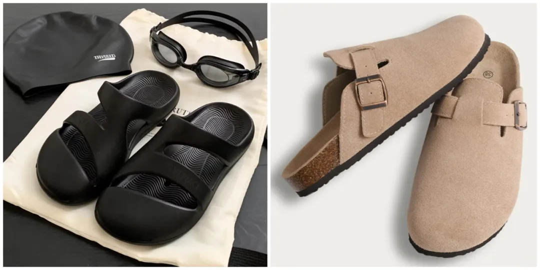 ✅优选:勃肯软木拖(防水涂层款)、厚底云朵拖、编织 / 网布沙滩拖。