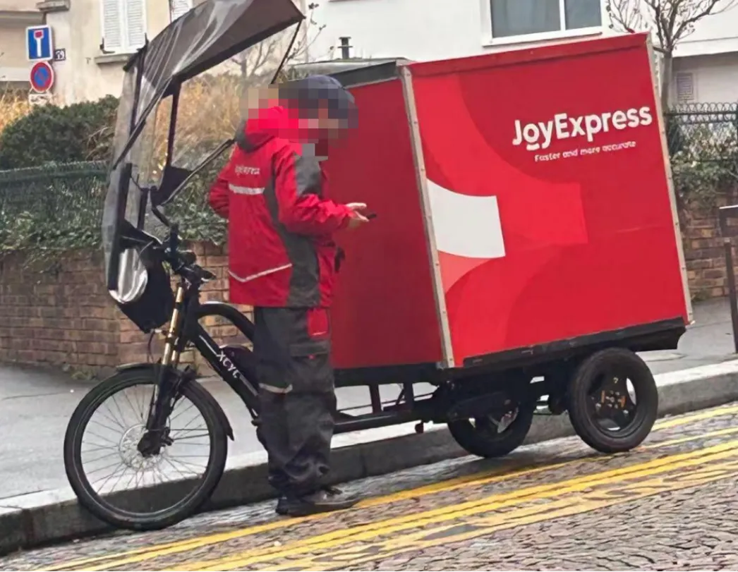 越来越多 JoyExpress 快递小哥,穿着京东物流的标志性红衣,开着同样的配送小车,在欧洲各城市走街串巷。