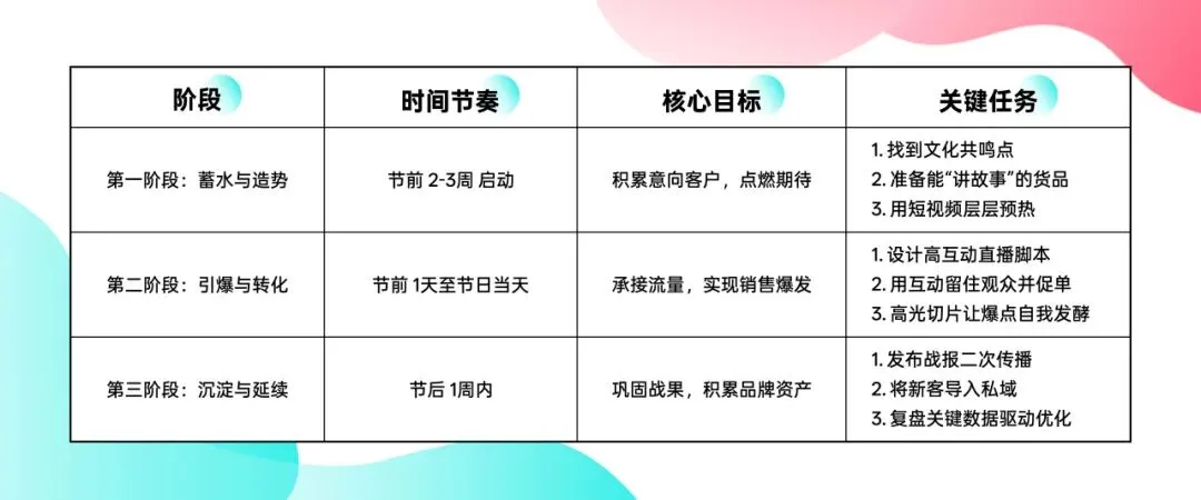 这场战役的胜负,不在于直播间的几小时,而在于一个贯穿预热期、爆发期、返场期的完整作战周期。