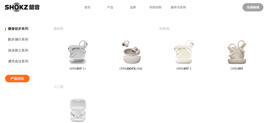 不过,派代查阅韶音官网发现,其目前的产品主要分为健身徒步系列、跑步骑行系列、游泳铁三系列,以及通讯会议系列,未见医疗健康相关分类。