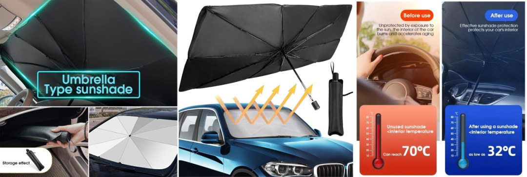 这款车用遮阳伞与普通遮阳伞并无明显区别,但它却在收纳、隔热性和车型适用性上更加契合消费者需求。