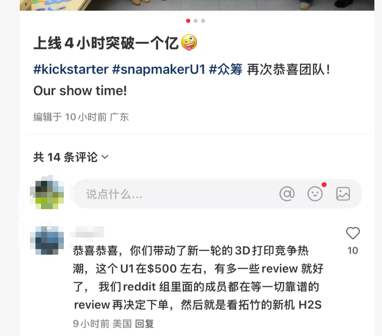 2020 年推出的 Snapmaker 2.0 更上一层楼,从超过 7000 名支持者那里筹集了 785 万美元,成为科技众筹历史上最成功的项目之一。而此次 U1 的众筹活动,不仅是新品发布,更意在重新激活品牌早期积累的核心用户群体。