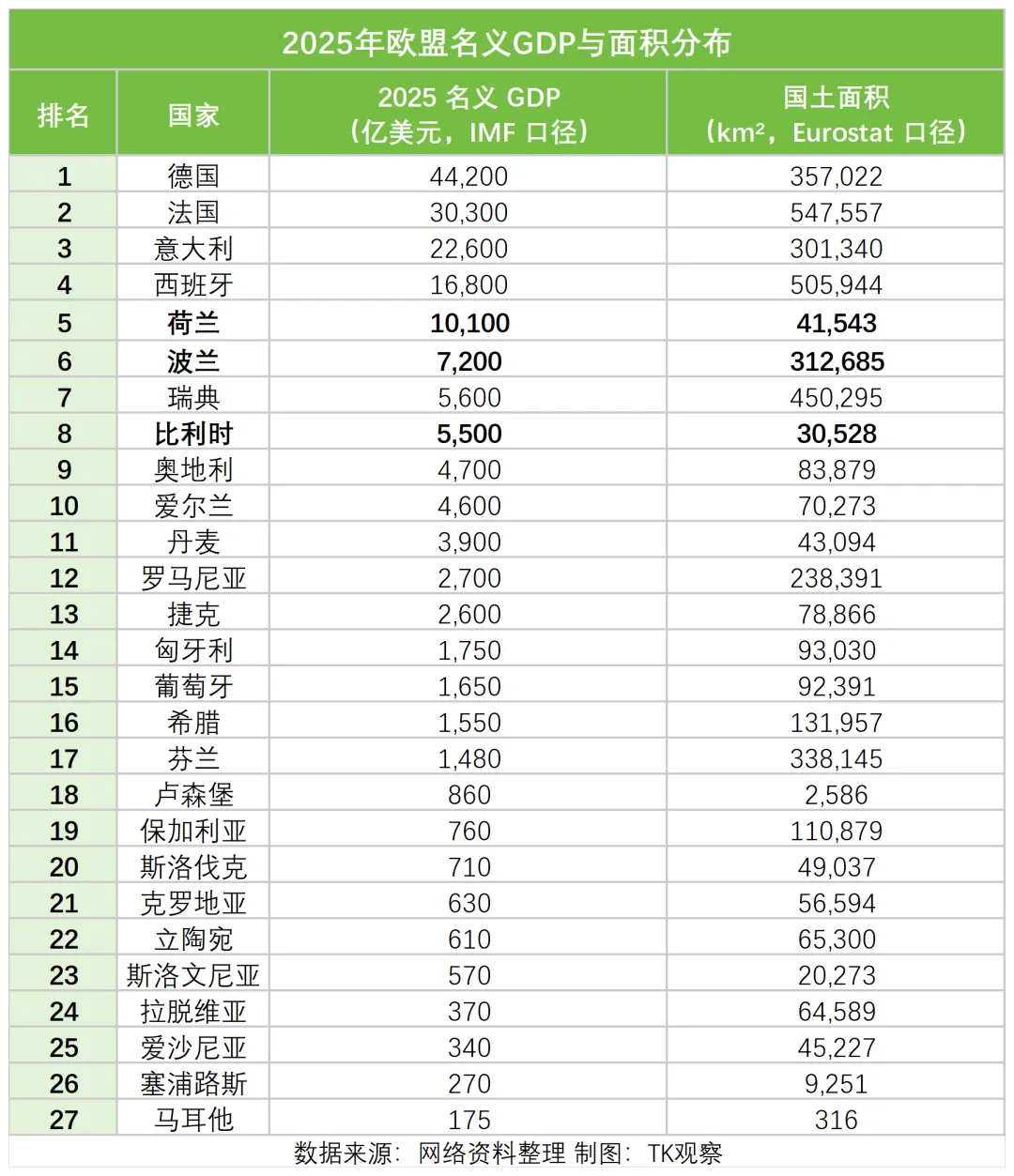 而在欧洲众多市场中,平台选择荷兰、波兰以及比利时作为新一轮站点开设的核心目标,也并非毫无缘由。数据显示,在2025年欧盟名义GDP排名中,前四大头部市场TikTok此前已成功触达,荷兰、波兰、比利时紧随其后,三者无论是经济规模、消费能力还是经济基础等方面,都具备较为成熟的运营条件,选择此三方开站自然也是情理之中。不过,与德意法西排名相邻的瑞典并未出现在本次新站点开放行列中,TK观察认为这或许与地理位置相关——比荷波紧邻TikTok欧区已开市场,在物流运输、协同运营等方面更适合欧区商家同步经营,可有效降低商家同步布局的运营门槛。