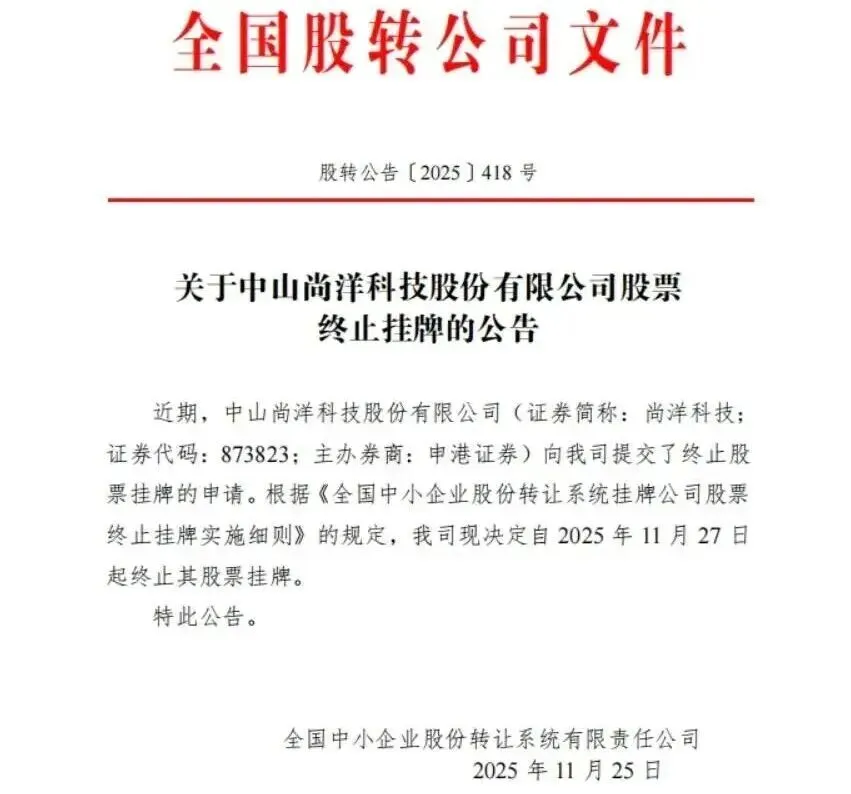 AMZDH 获悉,近日,有着 “化妆工具第一股” 之称的尚洋科技,正式从新三板终止股票挂牌,成为又一家在行业调整期选择 “退市自保” 的亚马逊大卖。从曾为欧莱雅、丝芙兰等国际巨头代工的行业标杆,到挂牌三年便匆匆离场,尚洋科技的落幕,为所有跨境从业者敲响了警钟。