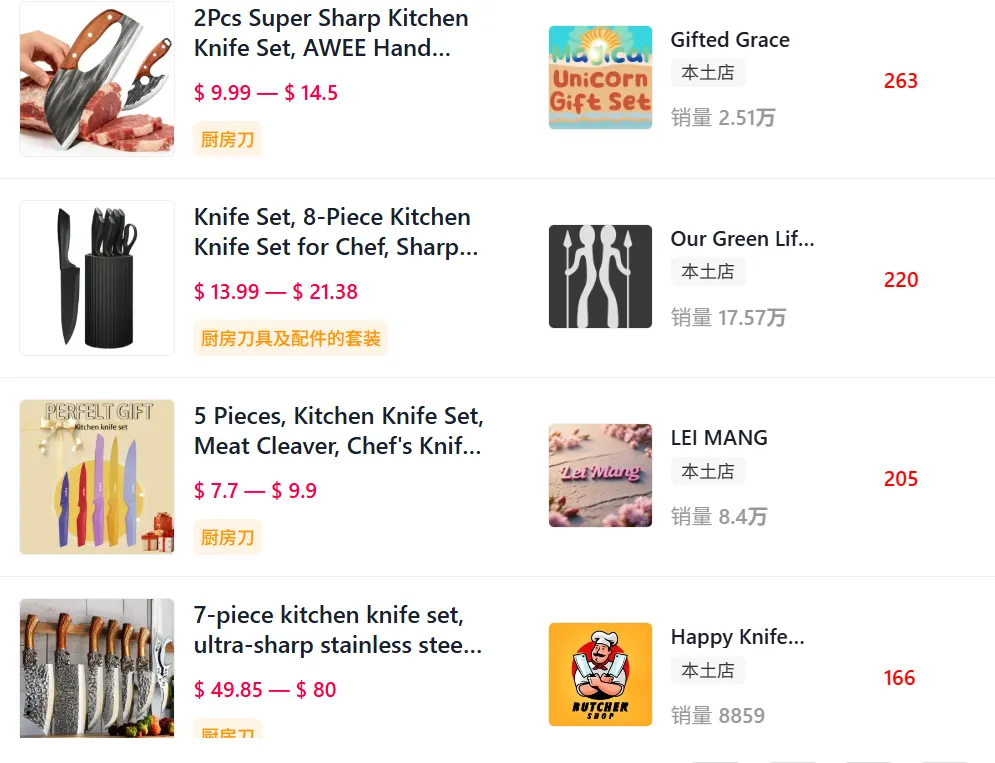 目前TikTok美区在高端刀具收纳(如磁吸立式刀架、品牌套装)以及便携布艺收纳两个方向上,产品供给相对稀缺。卖家可精准锁定这一需求缺口,切入高客单价或场景化出行的细分市场,抢占先发优势。