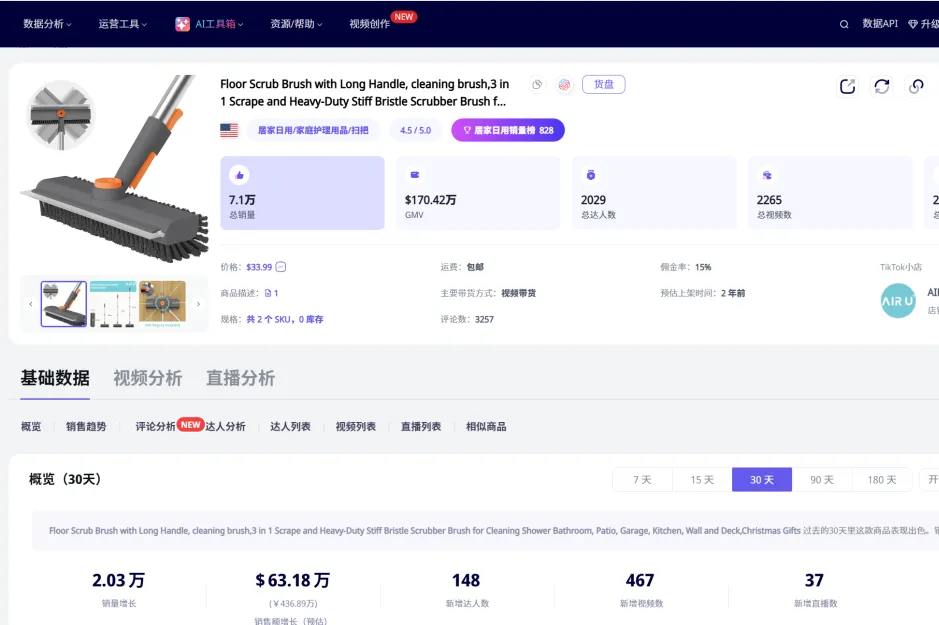这也是为什么,一把看似普通的长柄清洁刷,能够在TikTok 卖出数万单、创造超过百万美元的销售额。