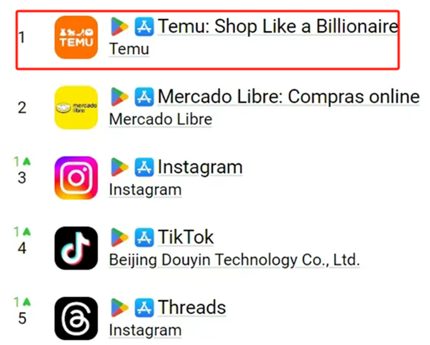 Temu 位列巴西应用下载榜榜首,图源:AppMagic