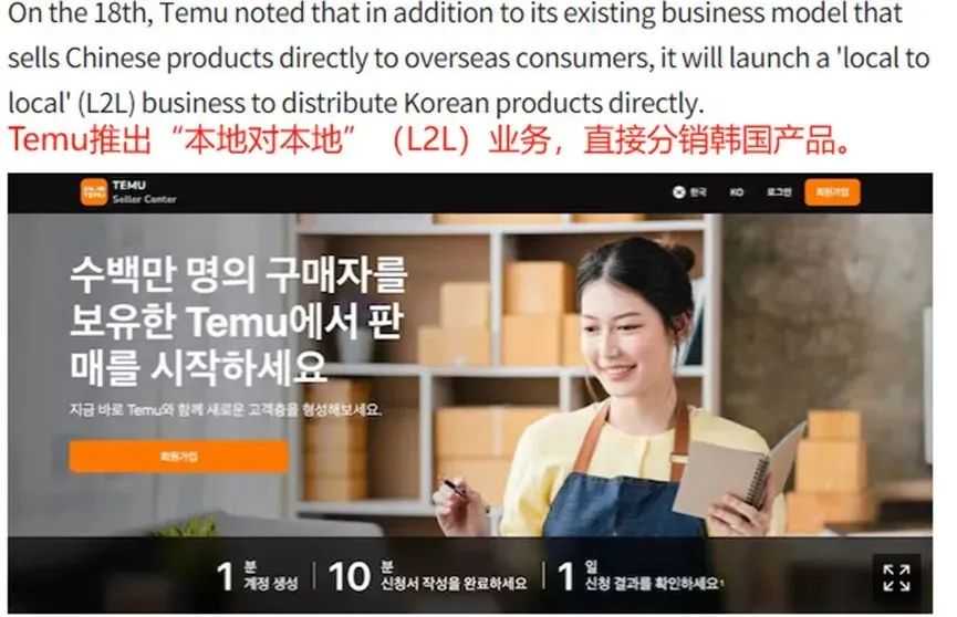 Temu 在韩国推出 L2L 业务,图源:Chosun Biz