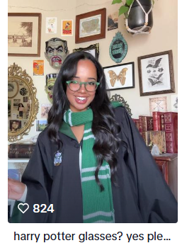 而博主 @summermcc.photos 发布的关于哈利波特联名款的视频,聚焦这一系列眼镜在万圣节的独特价值。她提到,一副 Pair 的哈利波特主题眼镜就能轻松搞定万圣节变装 —— 戴上格兰芬多主题顶盖,仿佛瞬间穿越到格兰芬多公共休息室;想扮演摄魂怪,也能找到对应的款式;而掠夺者地图主题的顶盖,则让人忍不住想复刻哈利・波特拿着地图在霍格沃茨城堡探险的经典场景。这种将产品与节日场景深度绑定的分享,让粉丝们直观感受到联名款的创意魅力。