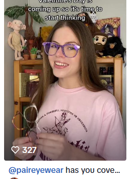 在与哈利波特联名系列上线时,博主 @tessanetting 发布了 “选择你的角色” 变装视频,视频中她随着音乐切换哈利波特里的不同角色,而 Pair 的哈利波特联名眼镜也会跟随角色变化相应的款式,这一创意视频获得了 13.3k 的点赞,进一步带动了该系列的传播热度。带动该系列首月狂卖 8 万件。