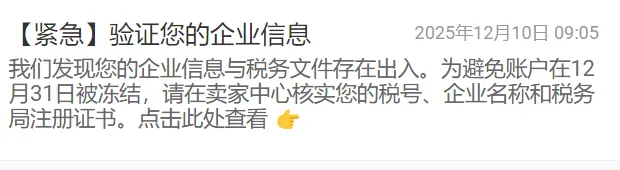 目前,结合交流群内的反馈,不少卖家名下多家关联店铺同步收到后台提醒,但卖家普遍表示,近期并没有主动修改过任何企业资料或店铺备案信息,并且在开店时提交的税号、注册证书等文件都是齐全的。