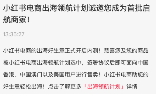 目前,许多卖家在后台收到了小红书的出海邀请。一些从来没有出过单的商品,也入选了,例如, 一个卖手机壳的卖家,其商品一直未被入选出海计划,在某天该卖家“突发奇想”上了一个好看的手机包,很快,这个产品就要被选入了出海计划。