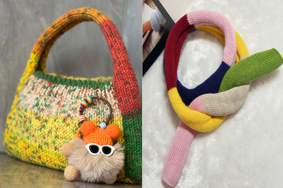 图/小红书卖家的针织包和彩虹腊肠围巾