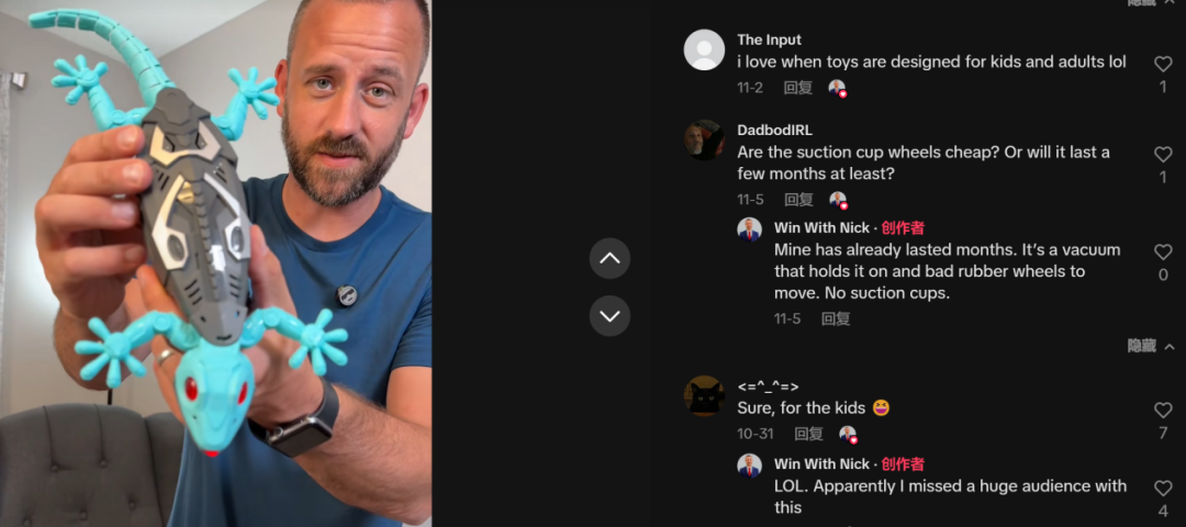 场景复用,打破受众局限:不止瞄准“儿童市场”,更延伸至多个场景:家长用来做“亲子互动工具”,成年人当作“解压玩具”,宠物主人用来“逗宠”——评论区“我和儿子抢着玩”“猫追着壁虎跑了一下午”的真实反馈,让产品受众从“儿童”扩展到“全年龄段”,销量天花板大幅提升。
