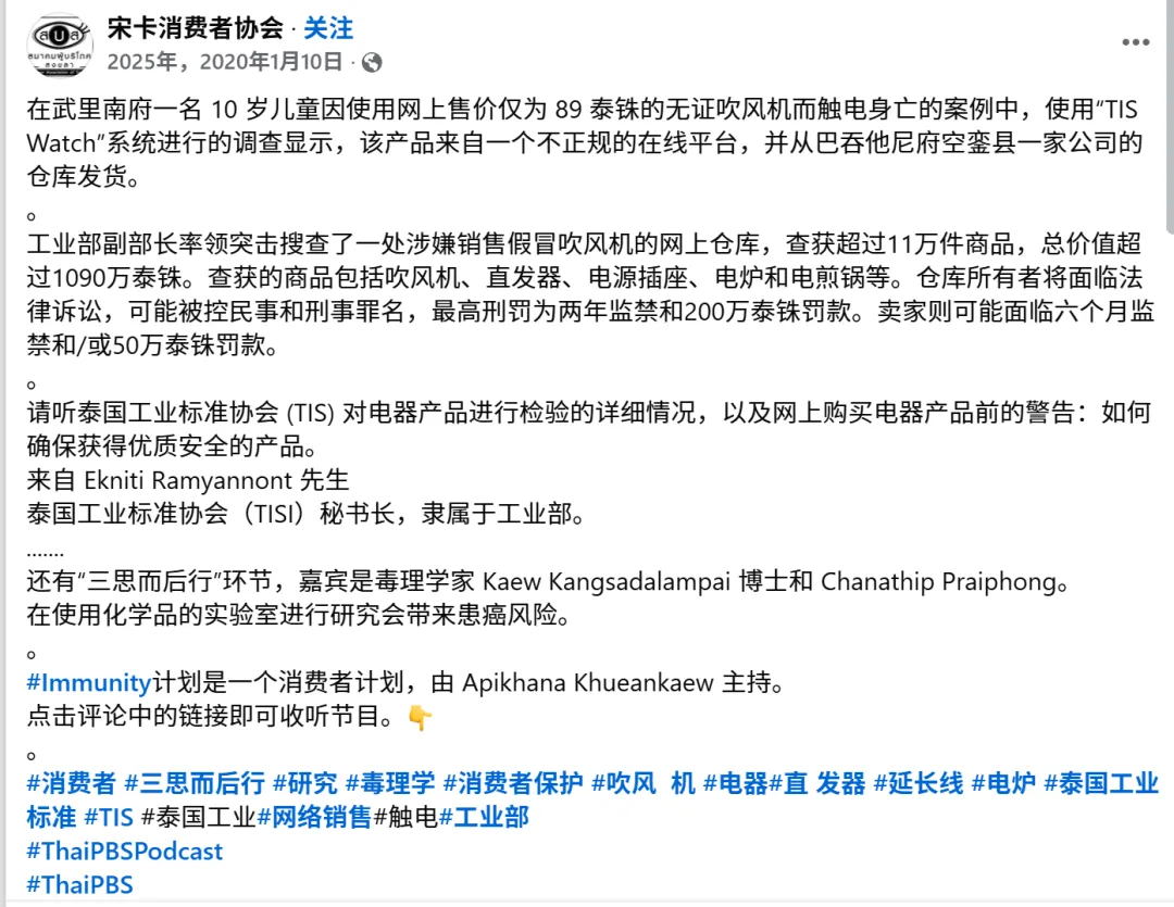 以及未经许可展示泰国工业标准协会(TIS)标志(可判处最高一年监禁或最高一百万泰铢罚款,或两者并罚)。