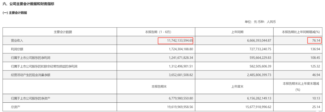 报告期内,公司营收达 117.4 亿元,同比增长 76%;利润总额 17.2 亿元,同比增长 136.9%,半年净利润甚至超过了过去一整年的表现。