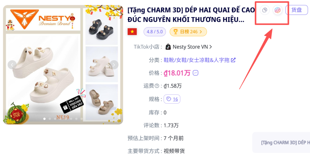 4.文化坑:就连越南对佛像、斋月的文化敏感坑,也能在内容生成时自动规避。同时支持输入 “Nesty Store VN” 查看其爆款 TOP3(如 “腰果花防滑凉鞋” 周销 32K 双),每周更新 100 款鞋靴潜力爆品,帮卖家避开冷门款,省 80% 试错时间。