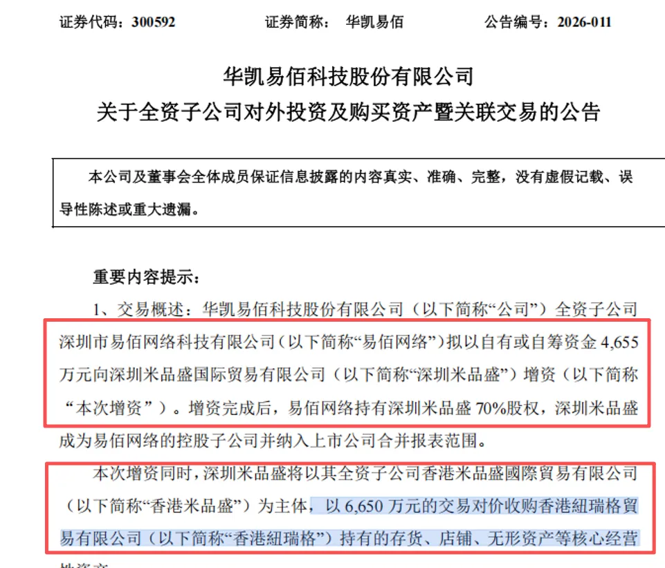 从 2025 年 5 月收购和煦电商店铺资产,到 9 月控股深圳树远百镒,再到这次拿下纽瑞格,三笔交易累计投入超 1.9 亿元。