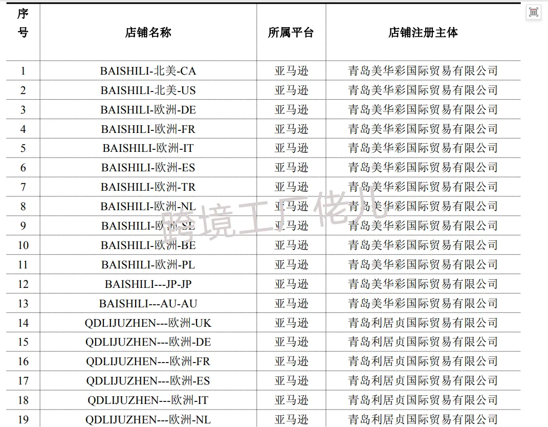 其中包括覆盖欧美亚澳四大市场的 75 个跨境店铺,仅亚马逊店铺就有 53 个。