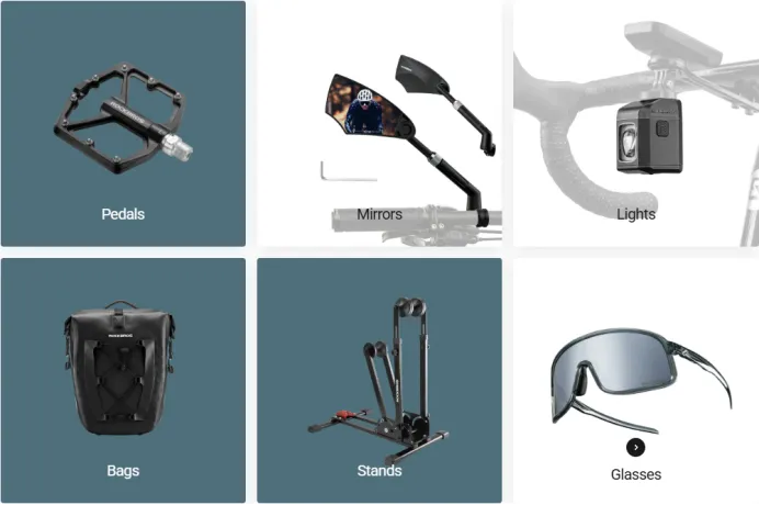 其功能配件产品包括骑行手机支架、导航设备、功率计、心率监测器等智能配件,结合科技元素提升骑行体验。