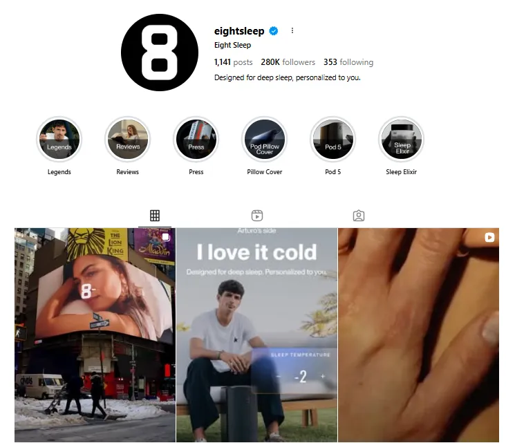 在 Instagram,Eight Sleep 则更注重情感营销和品牌格调。