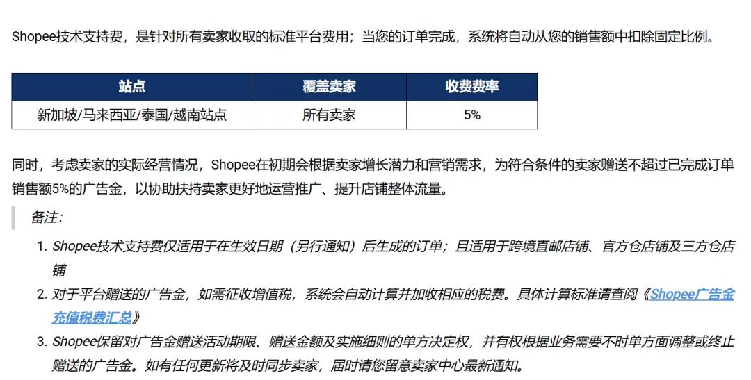 从 Shopee 官方释放的信息来看,这次新增的技术支持费并非定向调整 —— 既不针对特定卖家群体,也不局限于某类品类,而是一次覆盖范围较广的标准化平台费用调整。