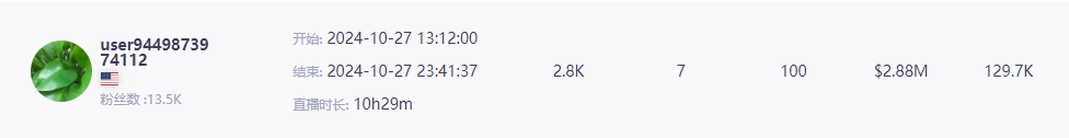 在一个月内开了 87 场直播,场均销售额约 294 美元,虽不惊人,但转化稳定、粉丝信任度高,形成了持续销售的基础。