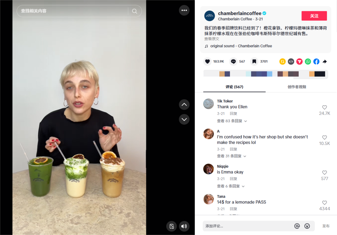 虽然出身“网红”,但 Chamberlain Coffee 在 TikTok 却巧妙避开了生硬的广告风格,更像是一种生活方式分享。