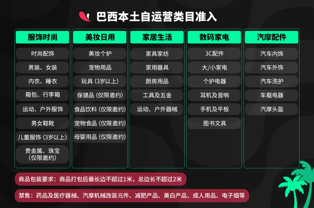 仅支持巴西本土公司(CNPJ 主体)入驻,需提供公司名称、成立日期、CNPJ 文件、税号及主要营业地址,支持包括MEI(个人微型企业家)在内本地企业类型。