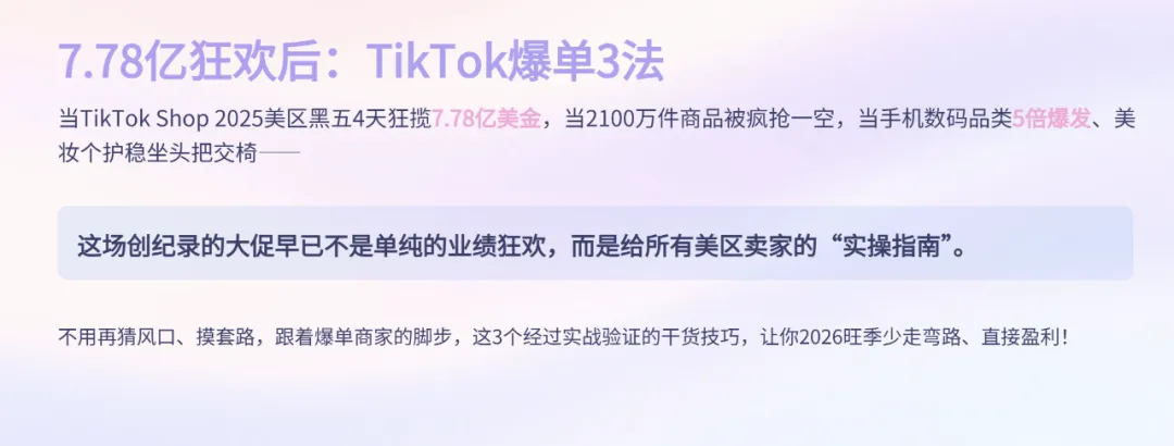 7.78亿美金狂欢后,TikTok美区卖家必看:3 个爆单实操法,2026 旺季直接抄作业!