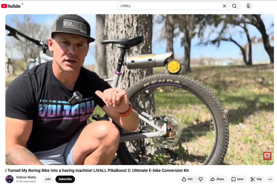 博主@VoltronWatt在YouTube上有25.8K订阅者,受众以欧美骑行爱好者、自行车改装玩家为主,兼顾追求通勤便捷性的城市人群,与LIVALL核心目标用户高度契合。视频内容围绕“普通自行车改装”展开,详细演示了PikaBoost 2电动改装套件的安装流程,实测改装后的骑行助力效果,对比改装前后的骑行体验,突出产品安装便捷、助力强劲的核心优势,借助真实实测场景提升用户信任度,助力推动产品转化,贴合YouTube平台深耕用户决策的核心价值。
