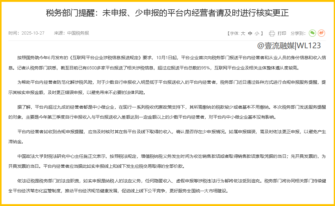 根据中国税务报 10 月 27 号发布的进一步提醒。