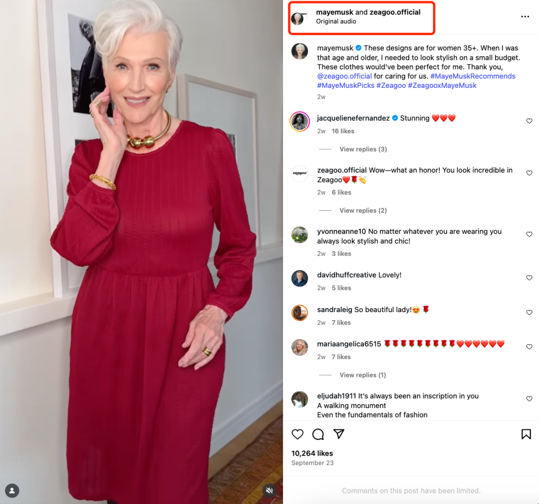 近日,旗下女装品牌 zeagoo 在成立 12 周年之际,官宣与全球杰出女性代表梅耶・马斯克达成合作。作为马斯克家族一员、营养学博士、知名模特、畅销书作者,拥有 140 万 Instagram 粉丝的梅耶・马斯克,背后的全球影响力更给品牌带来了强大加持。