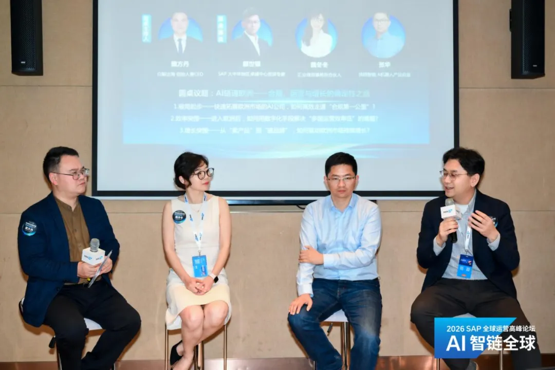 在“效率突围”与“增长突围”环节,张华分享了涂鸦以SAP为基座打通研产供销服的实践,指出复杂业务模式(平台+成品贸易)必须依靠一体化平台实现全链条追溯与协同。颜世银补充,SAP通过多语言、多币种、多法案的基础能力,以及供应链D2D集成和全球业务网络生态,帮助企业在欧洲实现“全球一盘棋”的高效运营。关于品牌增长,魏冬冬认为欧洲市场品牌力的核心在于用户信任,中国企业正处于通过合规建立信任的阶段;张华则以开关面板溢价三倍、AI玩具与具身机器人带来十倍情绪价值为例,说明AIoT 2.0时代情绪经济正成为品牌溢价的新引擎。颜世银总结,SAP的数字化能力从合规门槛、运营效率到长期陪伴,助力中国品牌在欧洲实现可持续增长。