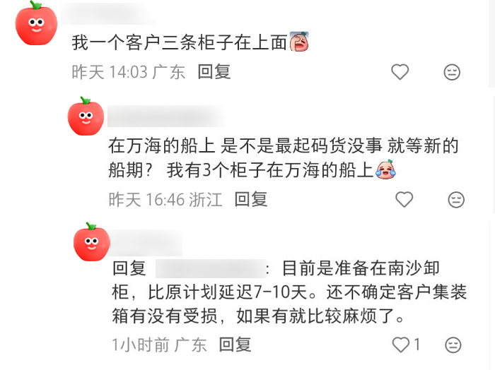社交媒体上,有不少使用集运的海外用户反映,包裹的物流信息中提示“需等待交通管制解除后才能确定开船时间”,到货时间变得无法预估。