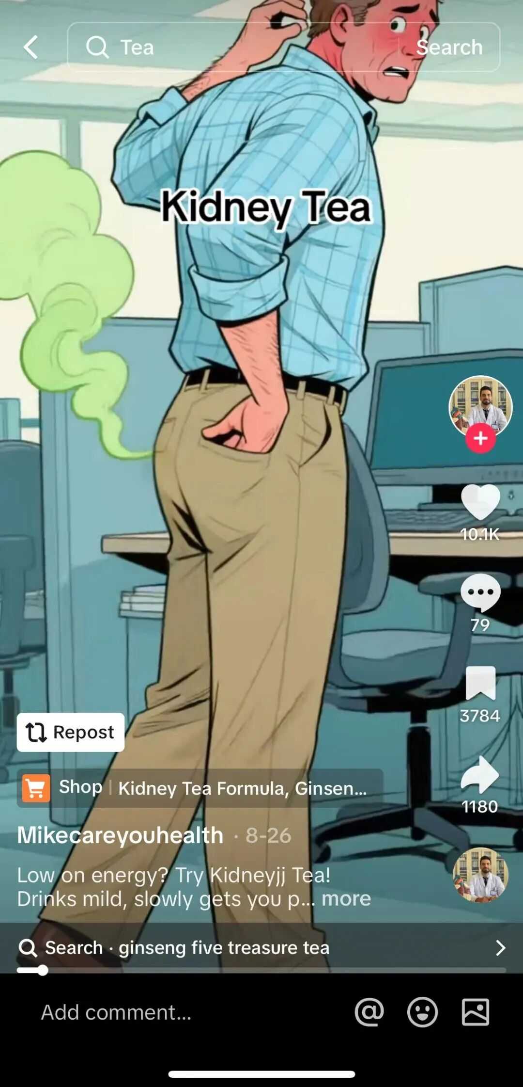 视频开场通过 AI 视觉冲击力强的画面,如”Belly bloated.(肚子胀) Often fart.(经常放屁)“ 描述了身体不适的症状,精准抓住了潜在受众的痛点。视频介绍了中药茶饮的配方,旨在解决肝脏和肾脏问题,为观众提供了一种潜在的解决方案,满足了他们对健康问题的需求。