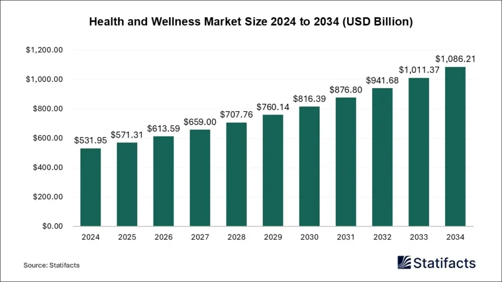 近年来,国内健康养生氛围渐入佳境,海外市场对健康的关注度同样大幅飙升。据 Statifacts 数据显示,全球健康市场规模预计将从 2025 年的 5713.1 亿美元跃升至 2034 年的 10862.1 亿美元,实现跨越式增长。