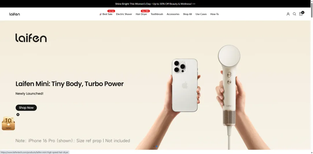 同时,品牌官网开设妇女节专属折扣产品页,承接所有社媒流量,为用户提供一站式购买入口。从预热到种草,再到转化,徕芬的妇女节营销环环相扣,将节日流量牢牢握在手中。