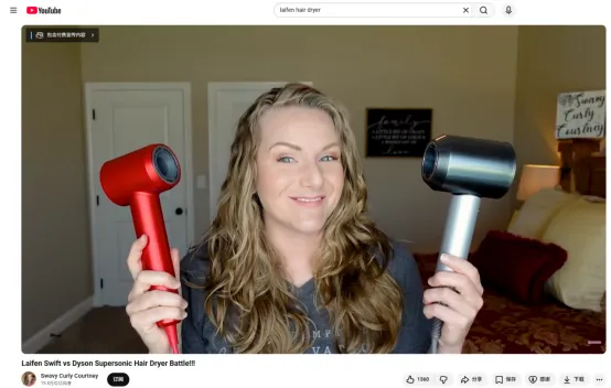 在与该博主的合作中,徕芬没有刻意吹捧,而是让博主将徕芬吹风机与国际高端品牌进行全维度实测对比:相同手法下,徕芬能将头发 100% 吹干,而竞品却因过热自动停机仅吹干 60%。这种用仪器说话、用结果对比的专业测评,让徕芬 “性能不输高端品牌,价格更亲民” 的认知深入人心,成为海外用户决策的重要参考。