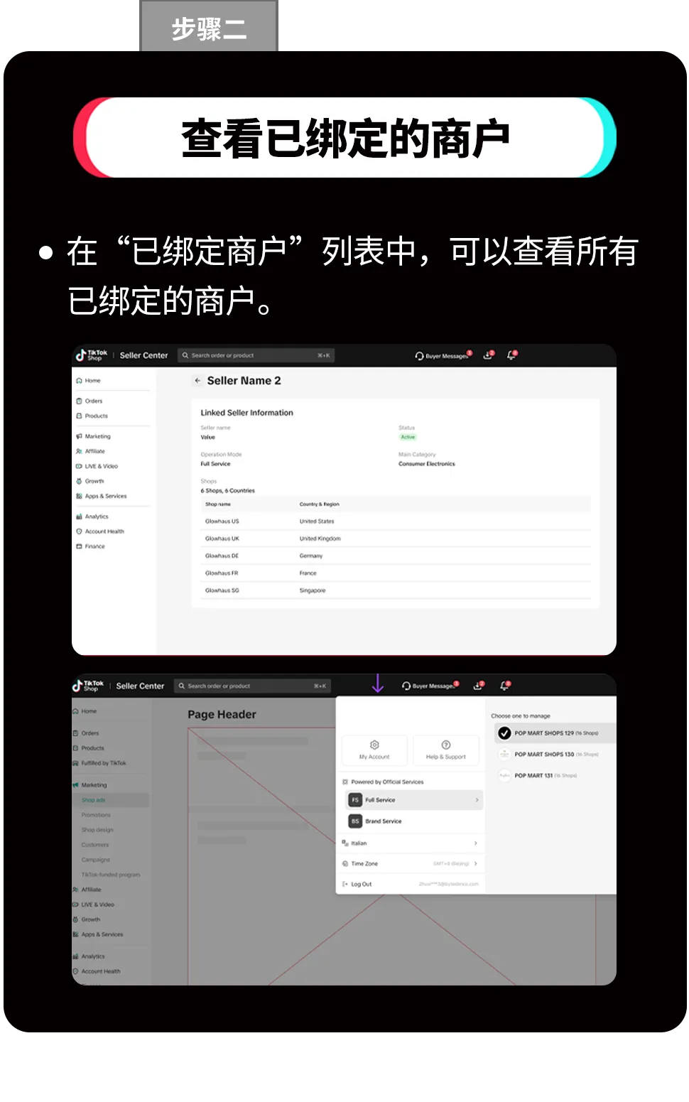 请您先在商家中心完成多店铺的账号绑定(操作指引详见「全球多店绑定」)。
