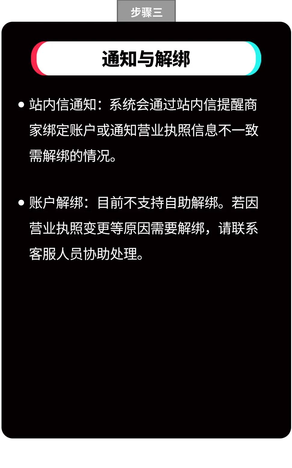 主体资质:本期支持商家将使用同一主体资质(营业执照)注册的店铺绑定在一起,后续版本将进一步支持跨主体资质的店铺绑定。