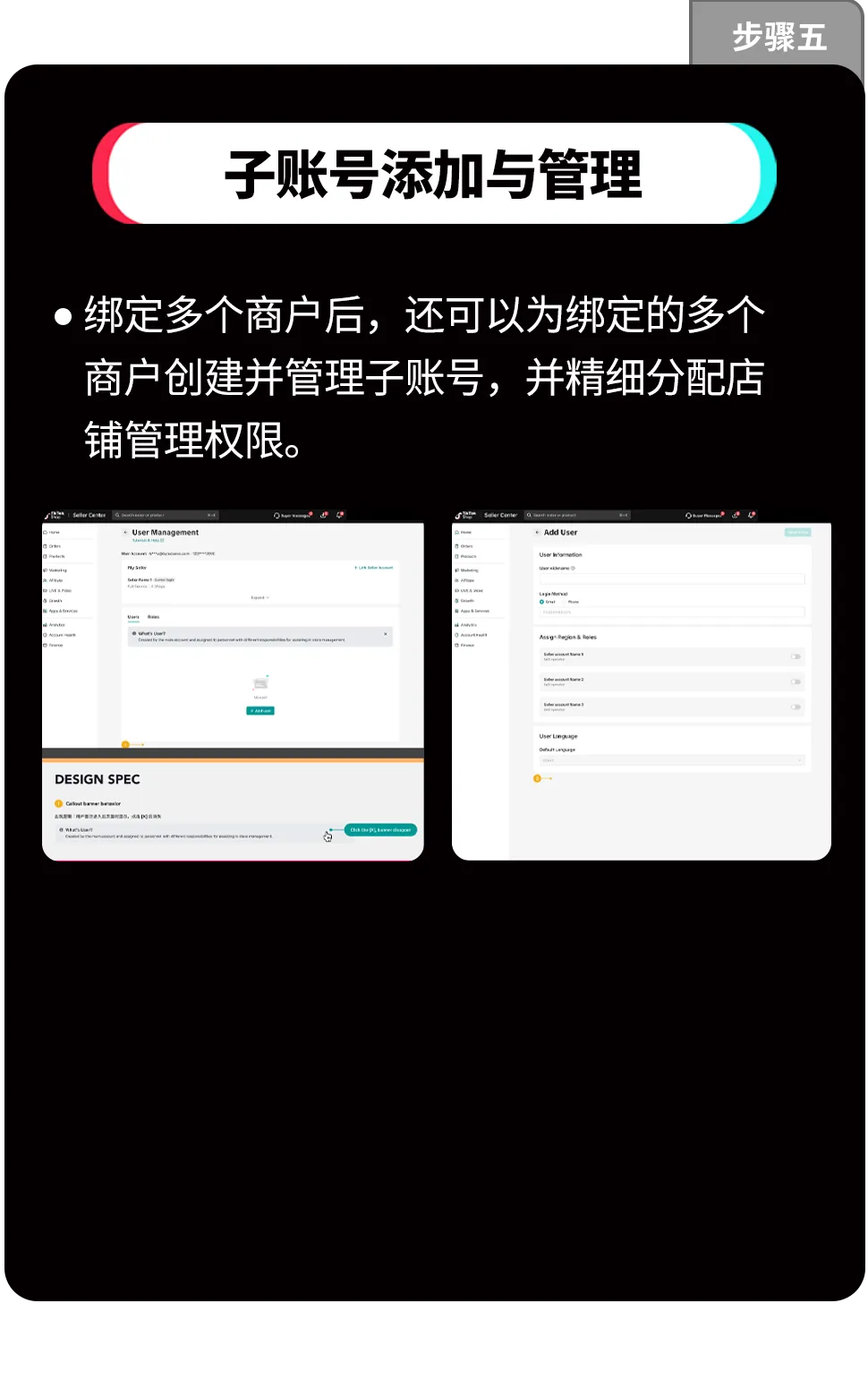 绑定后可一键切换店铺,无需使用指纹浏览器,无需反复登录多个账号;并可以为绑定的多个商户创建并管理子账号,精细分配店铺管理权限。